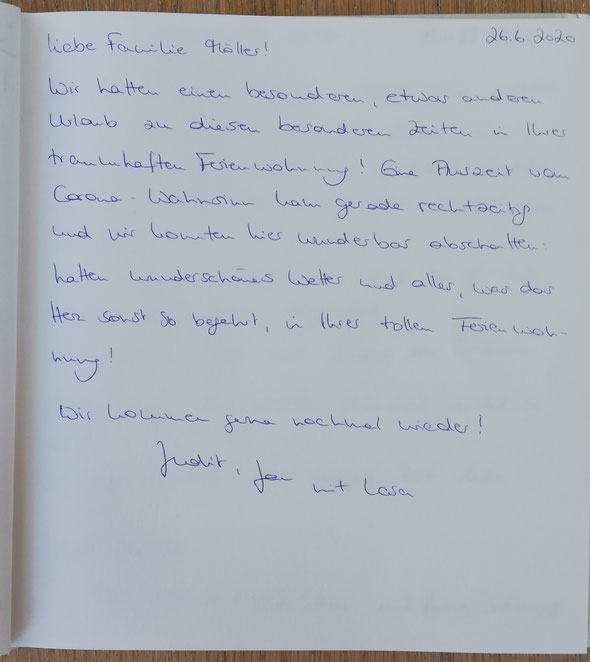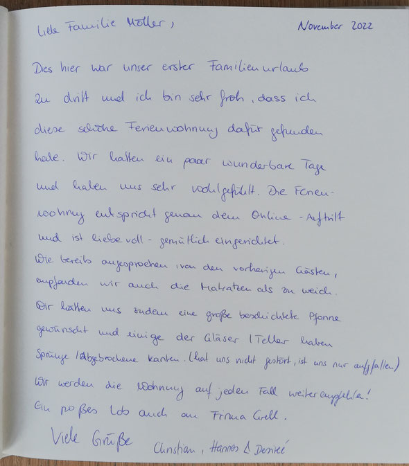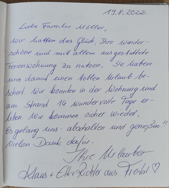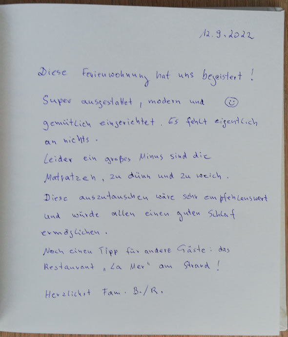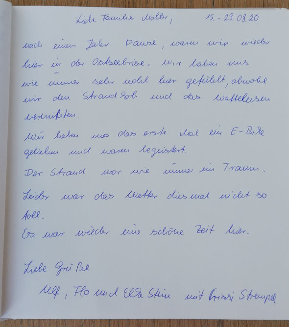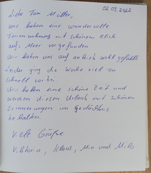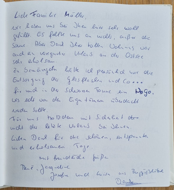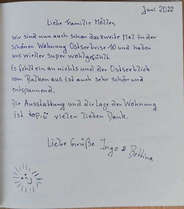 Nachfolgend haben Sie Einsicht in unser Gästebuch, welches in der Ostseebrise 10 ausliegt.